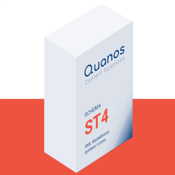 Quanos Content Solutions is the software specialist for creating and distributing smart information. The widely used XML editing system SCHEMA ST4 is part of the standard equipment of every modern technical editing department, and with SCHEMA CDS smart information becomes smartly accessible. With these tools, editors can easily realize smart information and publish it in all imaginable formats and layouts. Quanos Content Solutions has been shining with innovative, professional software since 1995 and thus has the necessary experience for every requirement.